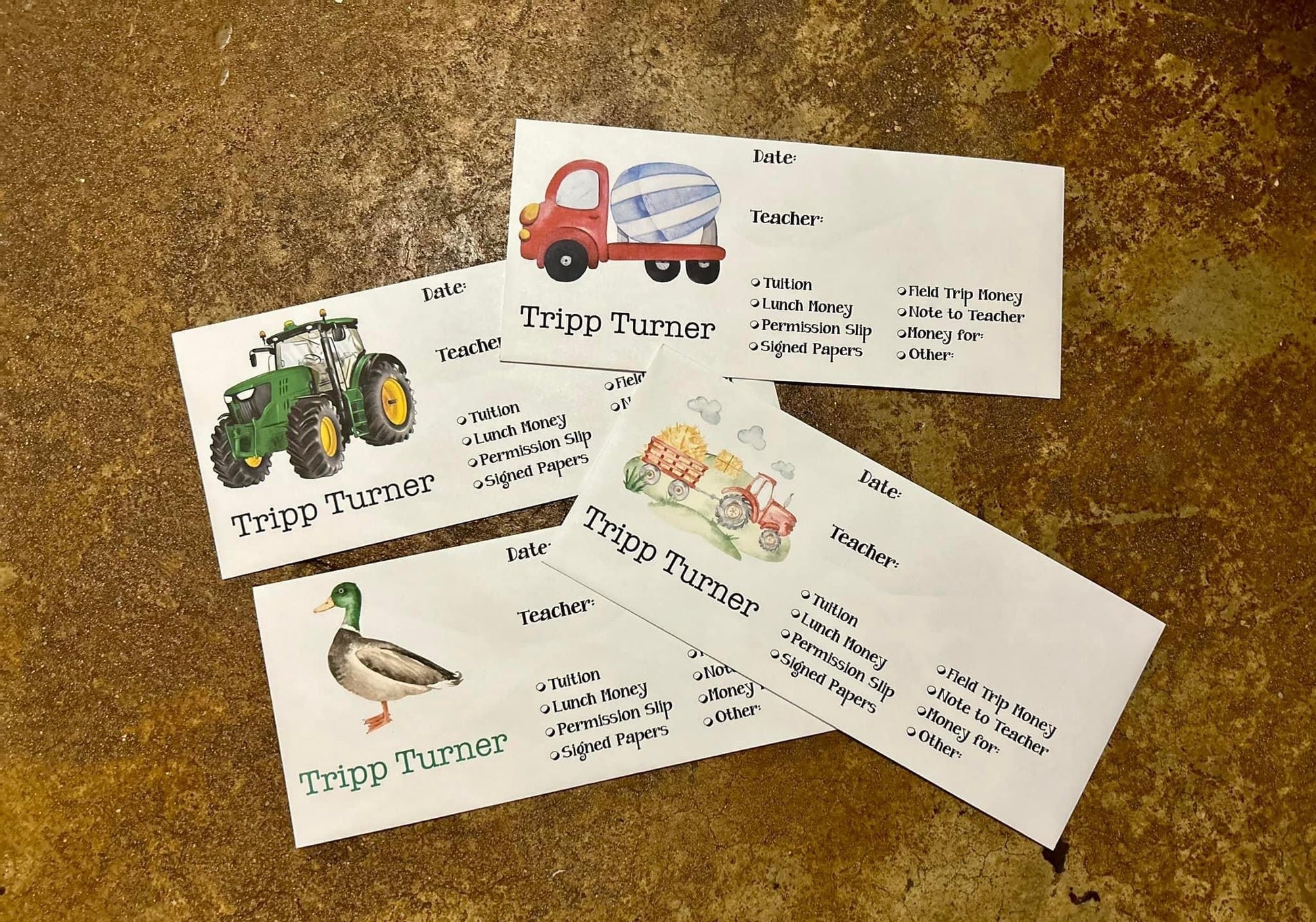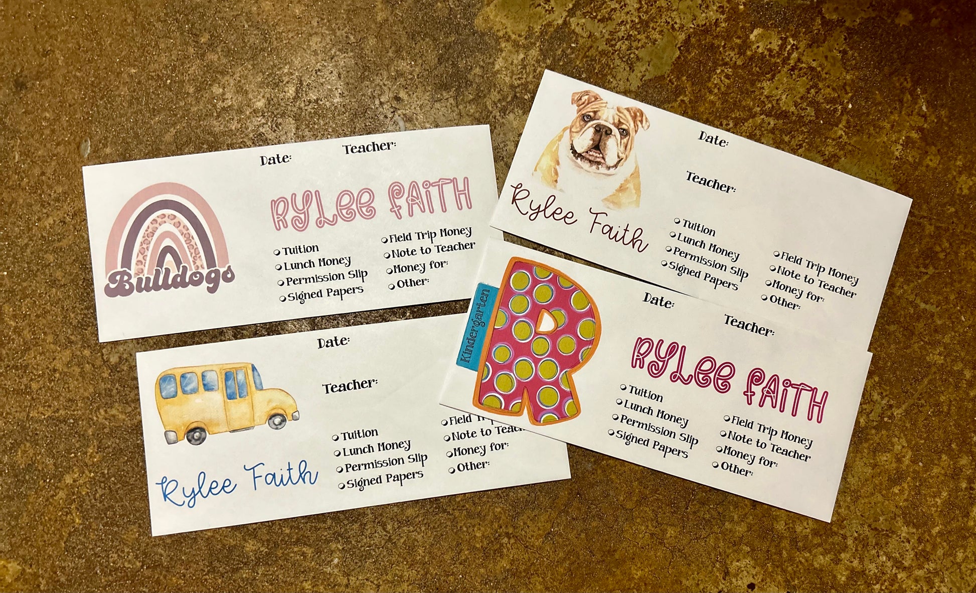 Comes in three different sets. At checkout, please leave girl or boy, name and if they are interested in any specific designs. We can do sports, mascots, hunting, fishing, dance, cheer, flowers, etc.