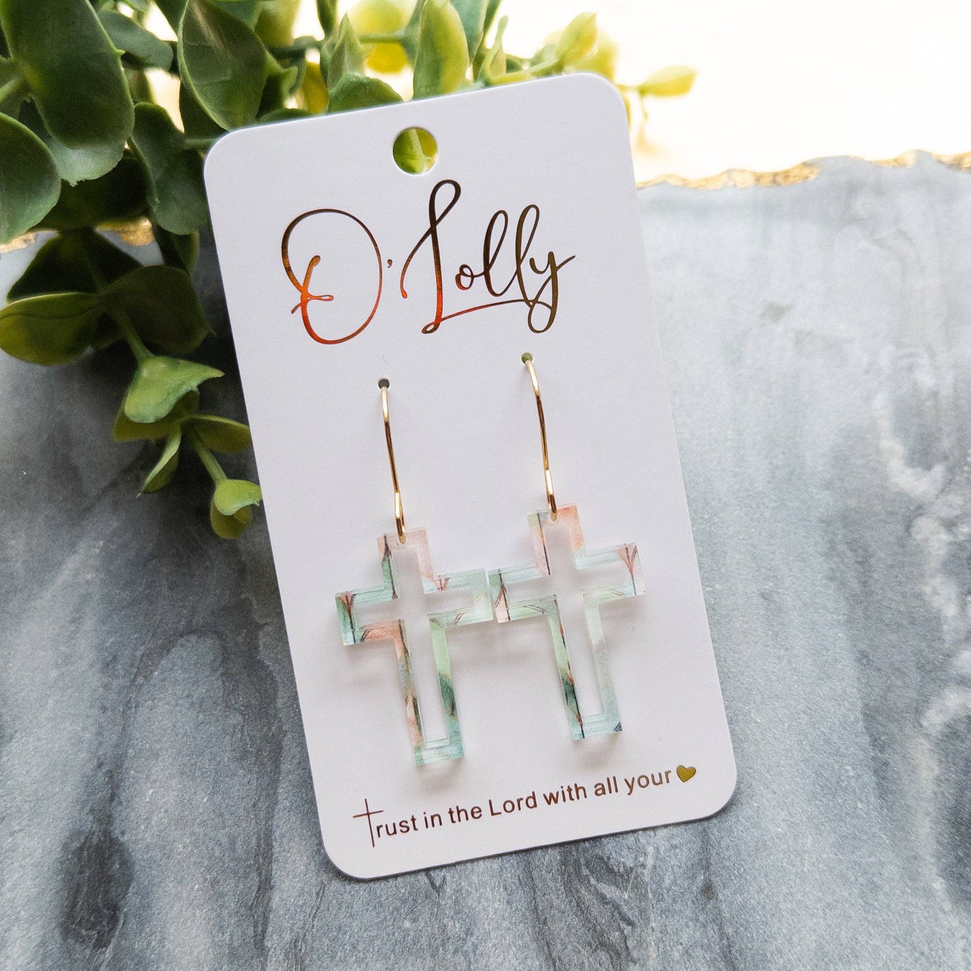 Open Acrylic Cross Earrings: Mint